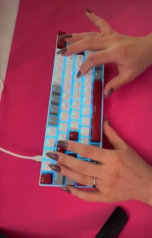Her favorite finds include LED keyboard lights that add a dynamic ambiance, a sleek mechanical keyboard, a personalized neon sign with her name, and an ambient light tube that enhances her streams’ visual appeal. Additionally, a rectangular camera light ensures her video quality stays sharp, while accessories like pastel-themed desk organizers bring order and charm to her workspace.