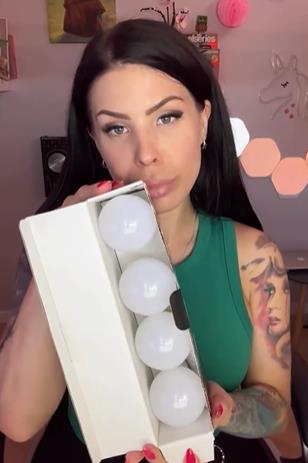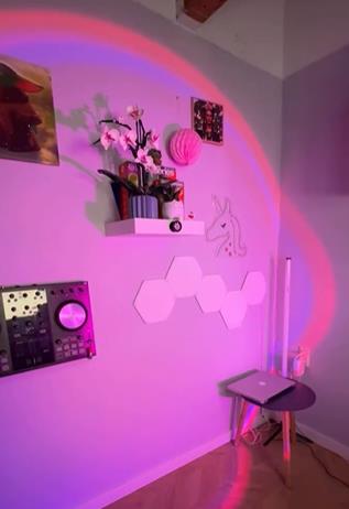 Natasa cleverly integrated Temu’s standing light tube, disco ball, multicolor background lights, and color-changing bulbs to create a neon, dreamlike backdrop for her streaming room, making a visually stunning effect.